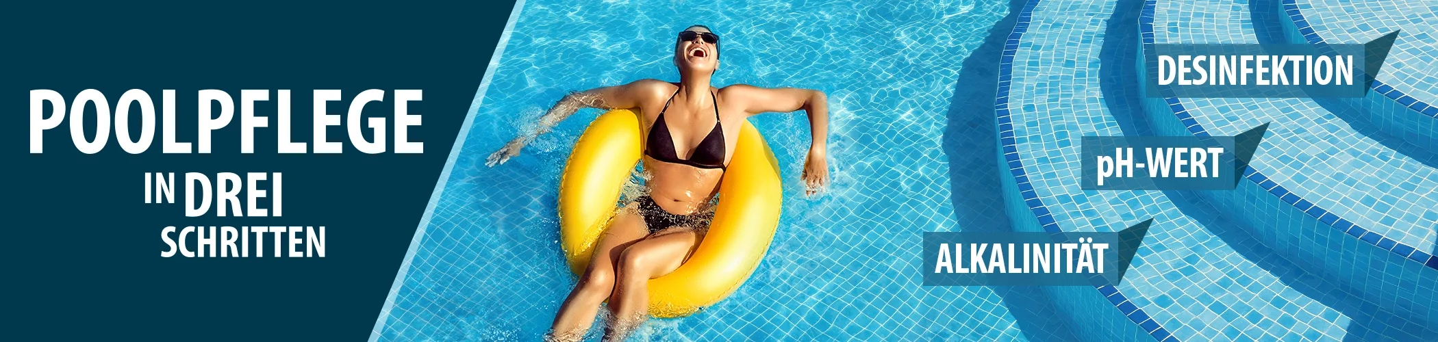Die Basis jeder Poolpflege bildet der korrekte pH-Wert, denn nur in einem idealen pH-Bereich zwischen 7,0 und 7,4 können Desinfektionsmittel wie Chlor ihre volle Wirkung entfalten. Mit Natriumcarbonat (Waschsoda, pH-Plus) regulieren Sie einen zu niedrigen pH-Wert zuverlässig nach oben. Sinkt der Wert hingegen über das Optimum, kommt der pH-Minus Granulat (Natriumbisulfat) zum Einsatz, das den pH-Wert gezielt senkt und dabei schnell löslich und einfach anzuwenden ist.